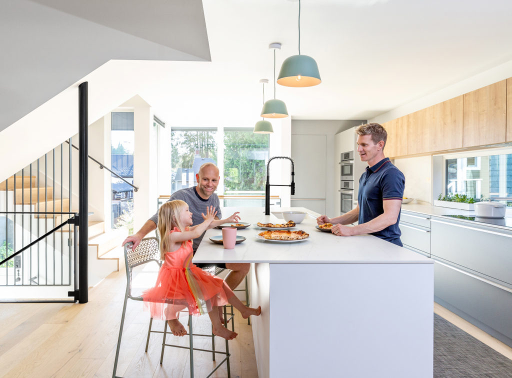 This Madison Park residence began its life as a floating home on Lake Union! It was transported and firmly affixed to the ground near the shore of Lake Washington, but we still like to think of it as a Boathouse. With a charming street presence, the design team crafted an open interior space with vaulted ceilings, new basement living spaces and a primary suite upstairs in the new addition.