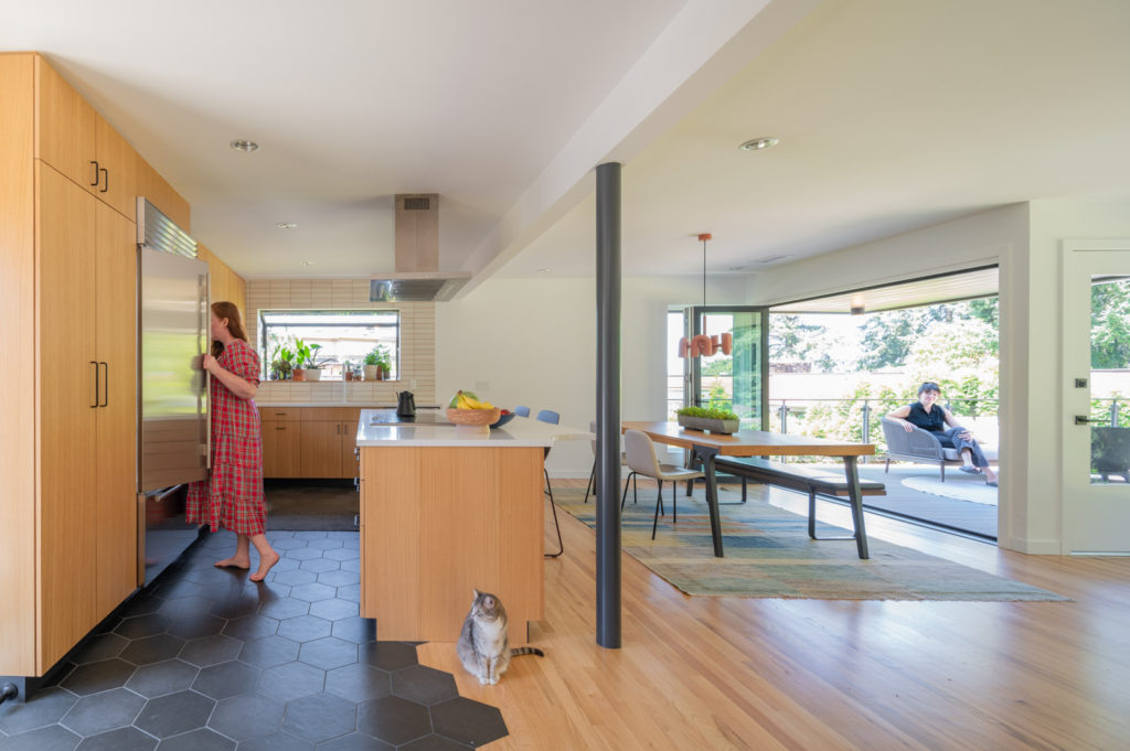 The Rambler is a complete interior remodel of a 1953 home in Seattle’s Seward Park neighborhood. It consists of a gut overhaul of the main floor of the house and exterior deck, along with finishing the existing daylit basement to include bedrooms, tons of storage, a new bathroom, a family room with bar and new exterior patio.